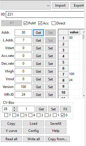CV28 Decoder Opmode Configuration: Hier wird die Betriebsart des Decoders definiert: