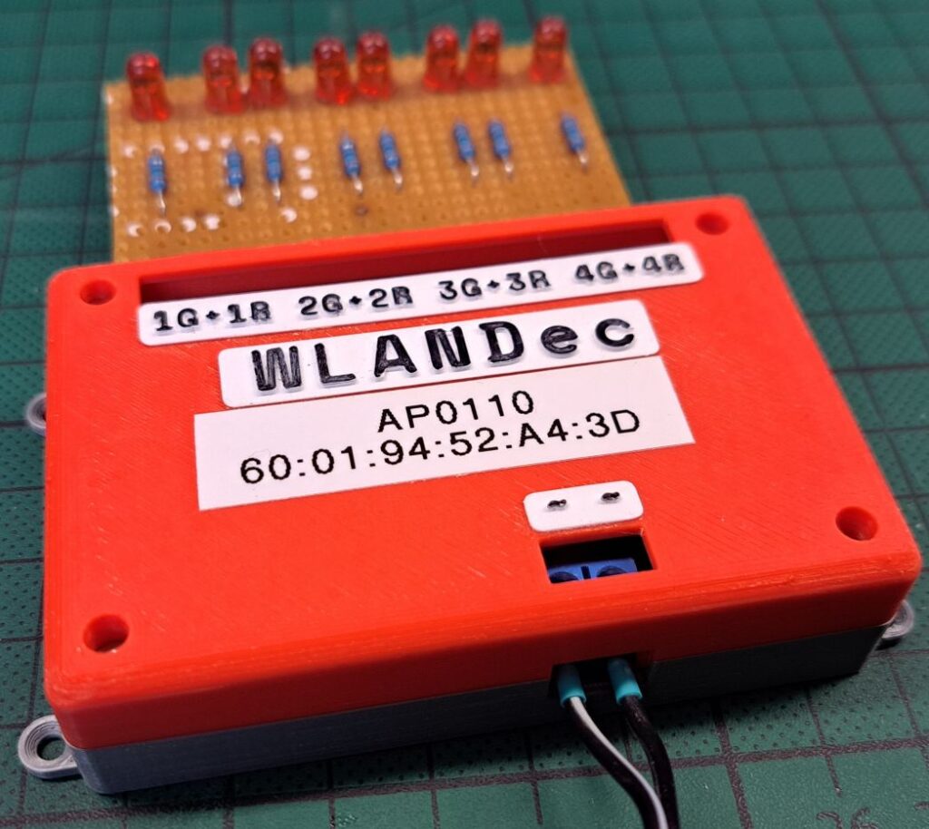 Um auch diese letzten Verbraucher unabhängig vom DCC-Gleissignal zu machen, sollten auch diese DCC-Decoder an das WLAN. Das hat den Vorteil, dass diese Zubehörartikel funktionsfähig bleiben, auch wenn mal eine Lok entgleist oder durch andere Ursachen das DCC-Gleissignal nicht da ist. Der bewährte WDecN-TN DCC-Zubehördecoder sollte dabei als Beispiel dienen und 1:1 ersetzt werden. Der neue „Decoder“ wurde „WLANDec“ getauft.